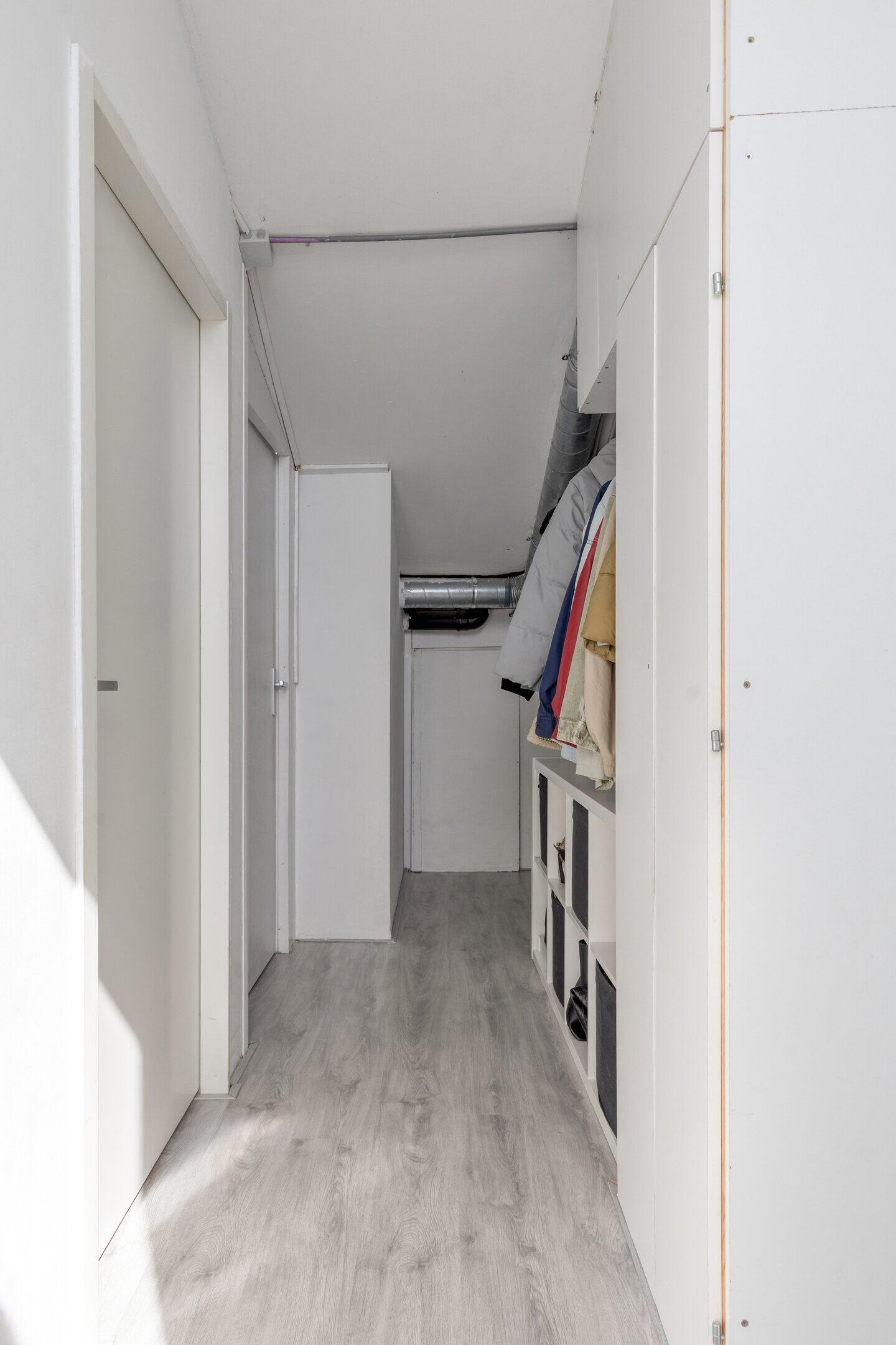 Op de overloop bevinden zich de aansluitingen voor de wasmachine en droger, evenals praktische bergruimte. Ook deze verdieping is voorzien van een laminaatvloer.